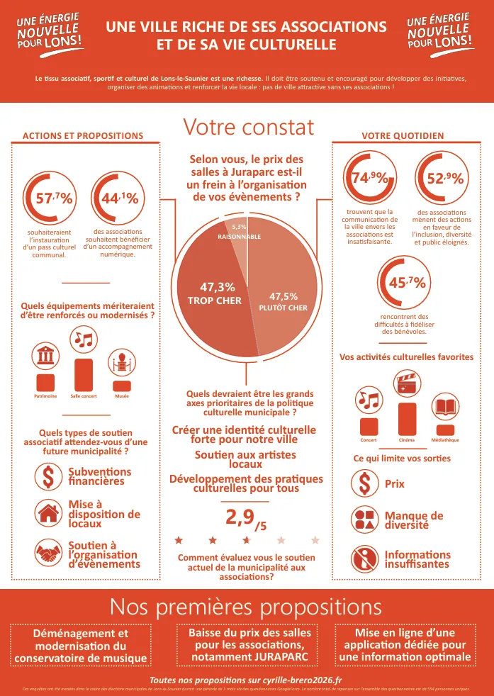 Lons-le-Saunier ne se transforme pas depuis un bureau : elle évolue grâce à ses habitants, ses commerçants, ses associations, ses familles, ses jeunes et ses aînés. Vos expériences, vos idées et vos attentes sont essentielles pour bâtir un projet municipal juste, utile et réaliste.